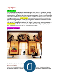 Volledig document van les 5 lessen van Geschiedenis van de Beeldende Kunsten vanaf 1860, gedoceerd door prof. Hilde Van Gelder in het jaar 2015. Alle te kennen kunstwerken alle uitleg uit de lessen staat in het document. Het is dus zeer volledig en handig om mee te studeren. Overzichtelijk door gebruik van kleuren en titels.
