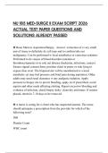 SOLUTIONS ALREADY PASSED i x Exam (elaborations) • 43 pages • by livingstone • uploaded 2025 Quick View i x NU 185 MED-SURGE II • NU 185 MED-SURGE II NU 185 MED-SURGE II EXAM STUDY GUIDE 2026 COMPLETE QUESTIONS AND ANSWERS GRADED A+ (0) $15.22 0x sold NU 185 MED-SURGE II EXAM STUDY GUIDE