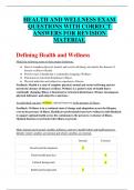 HEALTH AND WELLNESS EXAM QUESTIONS WITH CORRECT ANSWERS FOR REVISION MATERIAL