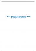 Dental Assistant Licensure Exam Study Questions and Answers