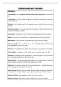 Summary of coordination and responses as well as practice questions and memo. TOPICS: 1. Response and coordination in animals 2. Human nervous system 3. Receptors 4. Effectors 5. Endocrine system Coordination and response in plants