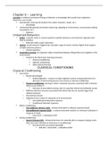 This is intro. to Psychology class notes on learning. This document goes into detail about learning, unlearned behaviors, classical conditioning, the processes of classical conditioning, behaviorism, Watson's Little Albert study, operant conditioning, the Skinner Box, reinforcement, providing reinforcement, partial reinforcement examples, partial reinforcement schedules, the variable ratio schedule, punishment, problems with punishment, effective punishment, shaping, primary and secondary reinf...