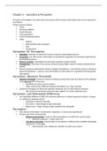 This is intro. to Psychology class notes on sensation & perception. This document goes into detail about sensation & perception, absolute threshold, sensation (just noticeable difference), perception (sensory adaptation), perception (attention and motivation), perception (other factors), Gestalt principles, figure-ground relationships, proximity, similarity, continuity, waves & wavelengths, frequency, light waves, color perception, sound waves, vision (anatomy), photoreceptors, visual pathways, ...
