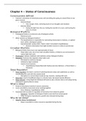 This is intro. to Psychology class notes on states of consciousness. This document goes into detail about states of consciousness, biological rhythms, circadian rhythms, sleep regulation, what sleep is, the stages of sleep, brain waves during sleep, NREM sleep, REM sleep, theories of dreaming, altered states, substance use, depressants, stimulants, opioids, hallucinogen, other altered states, hypnotism, and meditation.