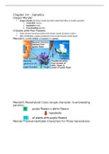 This is intro. to Biology class notes on genetics. This document goes into detail about genetics, Gregor Mendel, crosses with pea flowers, Mendel's monohybrid cross, heritable characters for three generations, alleles, Mendel's law of segregation, important terms regarding genetics, Mendel's explanation, test crosses, dihybrid crosses (true breeding parents), calculations using probabilities, trihybrid crosses, incomplete dominance, multiple alleles and codominance, mendelian inheritance in h...