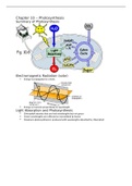 This is intro. to Biology class notes on photosynthesis. This document goes into detail about photosynthesis, electromagnetic radiation (solar), light absorption, light reactions, excitation of chlorophyll by light, photosystem (structure and function), light reactions (electron flow), Calvin Cycle, glyceraldehyde 3-phosphate (triose phosphate), rubisco, C4 and CAM plants, and the importance of photosynthesis.