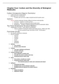 This is intro. to Biology class notes on carbon and the diversity of biological molecules. This document goes into detail about carbon compounds (organic chemistry), isomers, functional groups, hydroxyl, carbonyl, carboxyl (carboxylic acid), amino, and phosphates.