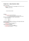 This is intro. to Biology class notes on baby chemistry: water. This document goes into detail about atomic structure, isotopes, radioactive isotopes, chemical bonds that depend on electrons in the outer shell, electronegativity, and types of chemical bonds.
