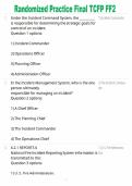 This randomized practice final for TCFP Firefighter II (FF2) certification provides verified exam-style questions and answers updated for 2025–2026. It covers advanced firefighting competencies including suppression strategies, rescue operations, hazardous materials response, incident command systems, and safety protocols. The randomized format ensures comprehensive review across all tested domains, simulating the actual certification exam environment. Designed to reinforce theoretical knowled...