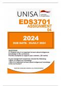 EDS3701 ASSIGNMENT 04...QUESTIONS & ANSWERS .....DUE DATE: 31 JULY 2024.....ASSIGNMENT NUMBER: 693526