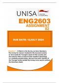 ENG2603 ASSIGNMENT02 DUE DATE 12 JULY 2024. QUESTIONS AND ANSWERS PROVIDED..ASSISTANCE 076...403....1229...Question 1: A Raisin in the Sun by Lorraine Hansberry