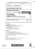 - 2025 Pearson Edexcel Level 3 GCE Psychology Advanced Subsidiary PAPER 1: Social and Cognitive Psychology Combined Question Paper and Marking Scheme • Tentamen (uitwerkingen)