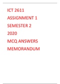 ICT2611 ASSIGNMENT 1 SEMESTER 2 2020 MCQ MEMORANDUM