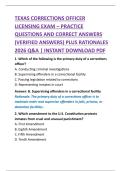 TEXAS CORRECTIONS OFFICER LICENSING EXAM – PRACTICE QUESTIONS AND CORRECT ANSWERS (VERIFIED ANSWERS) PLUS RATIONALES 2026 Q&A | INSTANT DOWNLOAD PDF