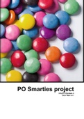 HAVO 3 Wiskunde, Praktische Opdracht (PO) Smarties project (Kansberekening). Het is een praktische opdracht binnen het vak wiskunde, met als onderwerp kansberekening. In de praktische opdracht wordt onder andere gebruik gemaakt van turftabellen en frequentietabellen, percentages, cirkeldiagram, steelbladdiagram, staafdiagram, frequentietabel met klassengrenzen en klassenmiddens, boxplot, standaardafwijking, enz. De praktische opdracht is 1877 woorden lang. Het document is uitstekend verzorgd en ...
