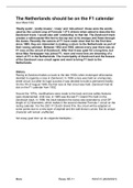 HAVO 5 Engels SE Essay (Schrijfvaardigheid), ''The Netherlands should be on the F1 calendar''.