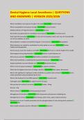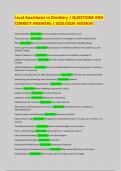 Local Anesthesia in Dentistry | QUESTIONS AND CORRECT ANSWERS | 2025/2026 VERSION Sodium Bisulfite - SOLUTION -Prevents oxidation of vasoconstrictors in LA Vasoconstrictors - SOLUTION -Compounds found in LA cartridges to constrict blood vessels Plain - SOLUTION -Type of LA recommended for patients with Sodium Bisulfite allergy Sulfa Drug Precautions - SOLUTION -No precautions needed for sulfites in LA if patient has sulfa antibiotic allergy Patient Position for LA - SOLUTION -Semi-...