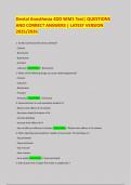 Dental Anesthesia 4DD SEM1 Test| QUESTIONS AND CORRECT ANSWERS | LATEST VERSION 2025/2026 1. Surface activity and low toxic potential? - Cocaine - Benzocaine - Bupivacaine - procaine - Lidocaine - SOLUTION - Benzocaine 2. Which of the following drugs can cause methemoglonemia? - Cocaine - Lidocaine - Bupivacaine - Procaine - Prilocaine - SOLUTION - Prilocaine 3. Vasoconstrictor in Local anesthetic solution is? - Reduce toxic effects of LA solution - Decreases depth & duration of LA -...