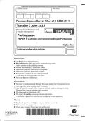 2025 Pearson Edexcel Level 1/Level 2 GCSE 1PG0/3H Portuguese PAPER 3: Reading and understanding in Portuguese Higher Tier