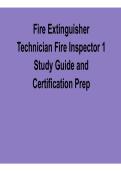 It covers key topics such as fire extinguisher types and maintenance, inspection procedures, fire safety regulations, hazard identification, and basic fire inspection duties. The structured content helps simplify technical fire protection con... i x Exam (elaborations) • 33 pages • by masterstudy • uploaded 2026 Quick View i x Fire Extinguisher Technician Fire Inspector • Fire Extinguisher Technician Fire Inspector Fire Prevention Chapter 5 FFP-1505 Study Guide PDF 2026 – Practice Questions & Exam Prep (0) $8.49 0x sold The Fire Prevention Chapter 5 FFP-1505 Study Guide PDF 2026 is a focused exam preparation resource designed to help students master key fire prevention concepts and succeed in assessments. This guide includes structured study material along with practice questions and answers to reinforce learning.