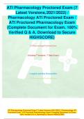 ATI Pharmacology Proctored Exam (7 Latest Versions, 2021/2022) / Pharmacology ATI Proctored Exam / ATI Proctored Pharmacology Exam (Complete Document for Exam, 100% Verified Q & A, Download to Secure HIGHSCORE) ATI Pharmacology Proctored Exam (7 Latest Ve