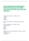 INTUIT BOOKKEEPING PROFESSIONAL CERTIFICATE Real Exam TEST PAPER 2025/2026 QUESTIONS AND SOLUTIONS MARKED A+ What are the 5 Account Types? - ,,,answer,,,..- Assets - Liabilities - Equity - Revenue - Expenses What is the accounting formula? - ,,,answe