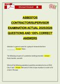 - ASBESTOS CONTRACTOR/SUPERVISOR EXAMINATION ACTUAL 2026 QUESTIONS AND 100% CORRECT ANSWERS • Exam (elaborations)