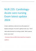 NUR 235: CardiologyAcute care nursing Exam latest update 2024