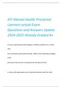 ATI Mental Health Proctored Laerners actual Exam Questions and Answers Update 2024-2025 Already Graded A+