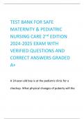 TEST BANK FOR SAFE MATERNITY & PEDIATRIC NURSING CARE 2 nd EDITION 2024-2025 EXAM WITH VERIFIED QUESTIONS AND CORRECT ANSWERS GRADED A+