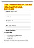 ENGL101 Week 1 Quiz 1: Grammar Practice: Commas in Direct Address and Introductory Elements SCORE 10/10 SUMMER 2025