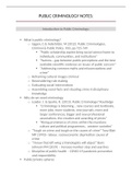 This document contains multiple quotes form various criminologists on their opinion on Public Criminology. These quotes have been condensed to only contain the important information clearly separated into the topics they correlate to making it easy to follow while writing coursework and easy to revise from for exams. These notes have been compiled from University Lectures.