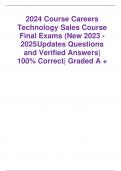 2024 Course Careers Technology Sales Course Final Exams (New 2023 - 2025Updates Questions and Verified Answers| 100% Correct| Graded A + What is a Sales Cadence? A sequence of sales activities where the sales teaminteracts with leads What is the Sales C