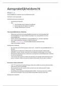 Bevat alle stof van week 1 tot en met week 3 van aansprakelijkheidsrecht. Bevat alles van de hoorcolleges. Bevat werkgroep aantekeningen en jurisprudentie uitgelegd.