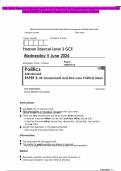 THE 2024 Pearson Edexcel Level 3 GCE POLITICS UK Government and Non-core Political Ideas PAPER 2 Question Paper with Detailed Mark Scheme