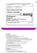 The 2024 Pearson Edexcel Level 3 GCE PORTUGUESE Translation into Portuguese and Written response to works PAPER 2 Question Paper with Detailed Mark Scheme