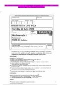 THE 2024 Pearson Edexcel Level 3 GCE PURE MATHEMATICS: PAPER 31: Statistics