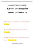BOC: HEMATOLOGY FINAL TEST QUESTIONS WITH 100% CORRECT ANSWERS [ GUARANTEED A+]