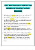 Colorado Life Insurance Final Exam Questions and Correct Answers 2025/2026