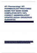- ATI: Pharmacology / ATI PHARMACOLOGY PROCTORED EXAMS TEST BANK/ EXAMS COMPILATION WITH 100% CORRECT ANSWERS/LATEST UPDATED 2023/A+ GRADE/PASS GUARANTEE • Exam (elaborations)