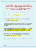 - NY Independent General Adjuster Exam - Series 17-70 Latest Prep Test Bank 2026 with 190 Questions and Correct Answers • Examen