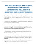 WGU D514 DEFINITIVE ANALYTRICAL METHODS FOR HEALTH CARE LEADERS WITH WELL DESIGND QUESTIONS AND CORRECT ANSWERS