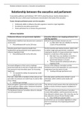 Revision notes on the relationship between the executive and legislature. Includes notes and examples which can be used to develop your understanding and enhance your essays.