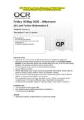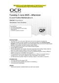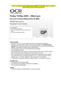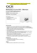 This document contains a comprehensive and integrated 2025 OCR A Level Further Mathematics A (Y545/01) Additional Pure Mathematics question paper with a complete final marking scheme. It is designed to assess advanced pure mathematics concepts and problem-solving skills in line with the OCR specification, making it suitable for revision, exam preparation, and academic reference.
