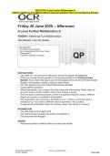 This document contains a comprehensive and integrated 2025 OCR A Level Further Mathematics A (Y543/01) Mechanics question paper with a complete final marking scheme. It is designed to assess key mechanics concepts and problem-solving skills in line with the OCR specification, making it suitable for revision, exam preparation, and academic reference.