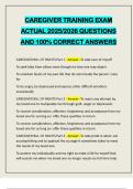 - CAREGIVER TRAINING EXAM ACTUAL 2025/2026 QUESTIONS AND 100% CORRECT ANSWERS • Exam (elaborations)