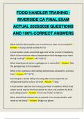 - FOOD HANDLER TRAINING - RIVERSIDE CA FINAL EXAM ACTUAL 2025/2026 QUESTIONS AND 100% CORRECT ANSWERS • Exam (elaborations)