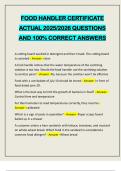FOOD HANDLER CERTIFICATE ACTUAL 2025/2026 QUESTIONS AND 100% CORRECT ANSWERS