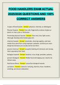 FOOD HANDLERS EXAM ACTUAL 2025/2026 QUESTIONS AND 100% CORRECT ANSWERS