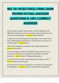 BIO 181 NCSU FERZLI FINAL EXAM REVIEW ACTUAL 2025/2026 QUESTIONS & 100% CORRECT ANSWERS